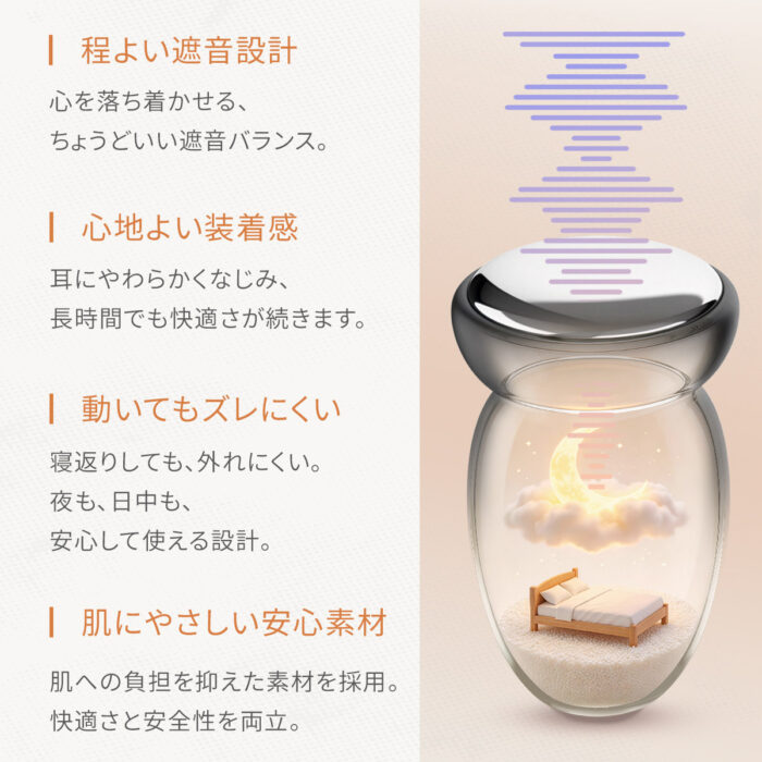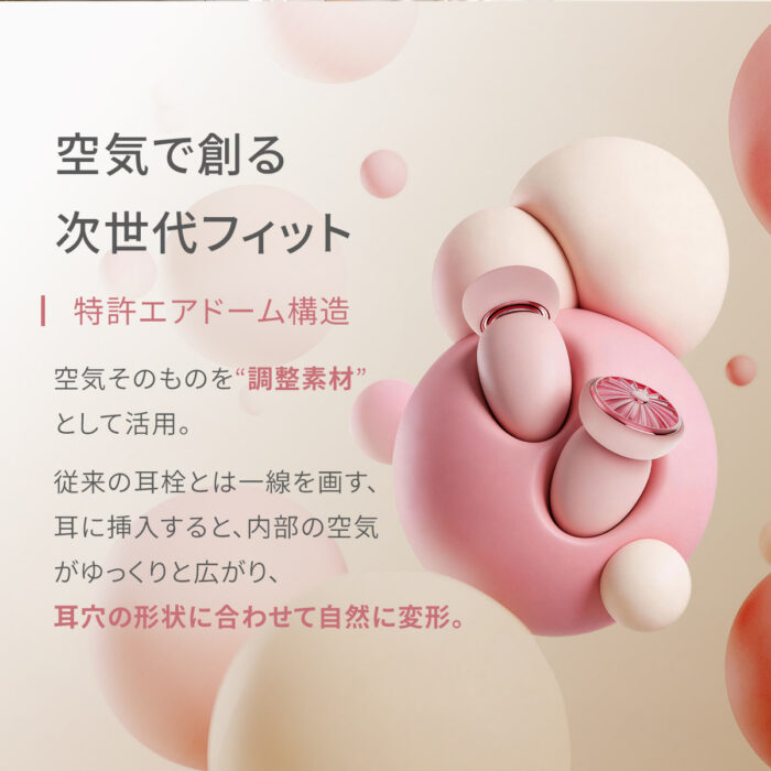 ・【究極のフィット感】内部の空気がクッションとなり、個人の耳の形に自然に馴染みます。