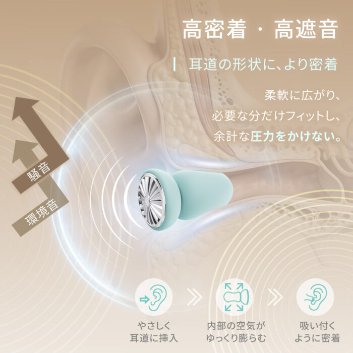 ・【長時間でも痛くない】中空構造のため、従来のシリコン耳栓特有の「詰まった感じ」や「圧迫感」を大幅に軽減しました。