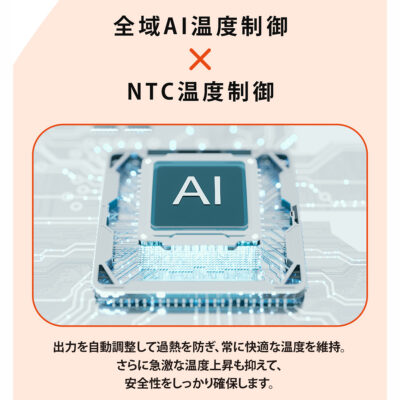 ・【安心の安全機能】AI+NTC温度センサー搭載で異常加熱を防止。本体が45度以上傾くと自動電源OFF。お子様やペットがいるご家庭でも安心。
