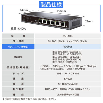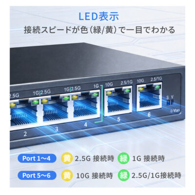 商品仕様 ポート構成:2×10G (RJ45) + 4×2.5G (RJ45)